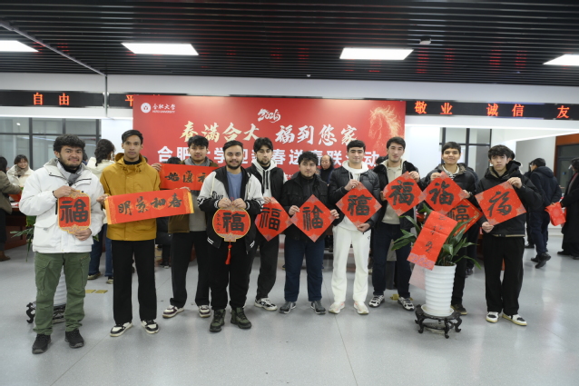 活动现场福字斗方贴满角落,福字挂饰高高挂起,红色联纸整齐铺展,砚中墨汁充盈饱满,喜庆的氛围感染着每一位到场人员。教职工们其乐融融,沉浸春联创作与春联欣赏的乐趣之中,这些散发着清新墨香的春联,寄托着教职工们辞旧迎新、接祥纳福的共同心声,传递出美好的新年祝愿和昂扬向上的精神面貌。活动还吸引了国际教育学院外国留学生的参与,他们好奇地询问“马到成功”“龙马精神”等吉祥话语的寓意,认真聆听“福”字承载的美好期盼,在轻松的互动中感受中国年俗文化的深厚底蕴。