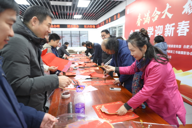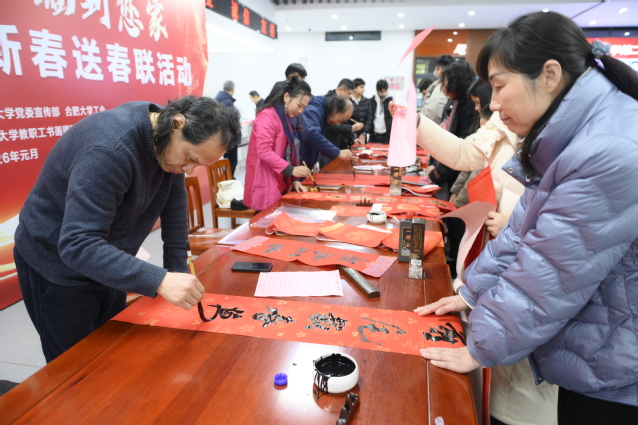 翰墨飘香添雅韵,春联焕彩贺新春。1月30日,在农历丙午马年新春佳节即将来临之际,由党委宣传部、校工会主办,教职工书画摄影协会承办,以“春满合大・福到您家”为主题的迎新春送春联活动在老于二期大学生活动中心举行。