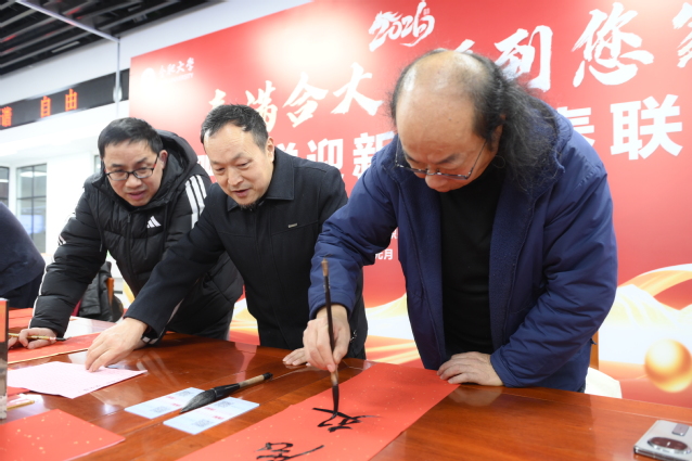 墨香传递祝福,春联承载愿景。校领导邬平川、任永、周飞、白义香、吴功福、王晓峰亲临活动现场指导,与现场教职工亲切交流,并向挥毫创作的书法家和老师们致以诚挚的问候与感谢,对活动的暖心开展给予高度肯定。(撰稿 王迅)