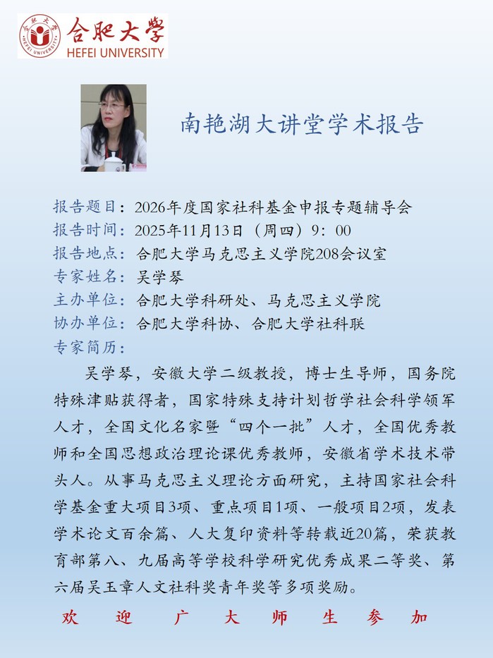 【南艳湖大讲堂】2026年度国家社科基金申报专题辅导会