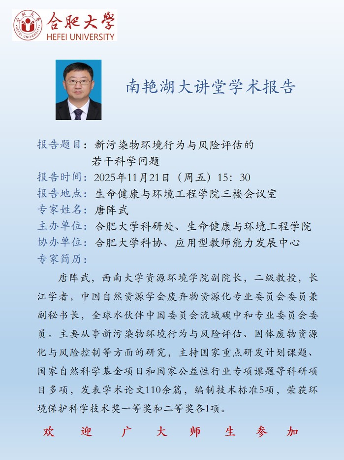 【南艳湖大讲堂】新污染物环境行为与风险评估的若干科学问题