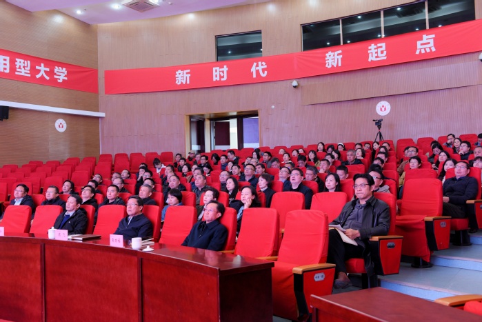 为深入学习贯彻党的二十届四中全会精神,统一思想、提高认识、凝心聚力,推动学校事业高质量发展,11月19日下午,我校在图书馆报告厅A厅举行学习贯彻党的二十届四中全会精神宣讲报告会。报告会由校党委书记邬平川主讲,校党委副书记周飞主持,全体处级以上领导干部参加学习。