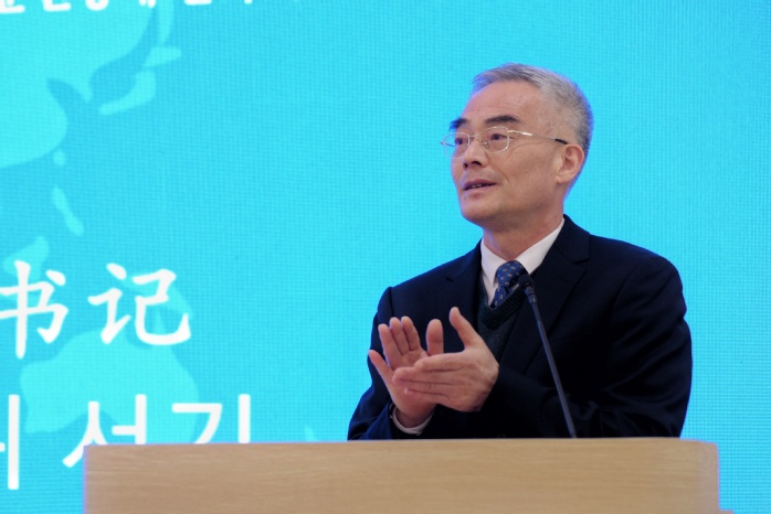 邬平川在致辞中对来自长三角各地的参赛选手、指导教师及嘉宾表示热烈欢迎。他表示,在长三角各地教育厅(委)的指导下,合肥大学与顺天乡大学精心组织,通过以赛促学,为长三角地区韩国语专业学生搭建语言交流学习的平台,对促进区域外语教育协同发展、深化国际教育交流具有重要意义。
