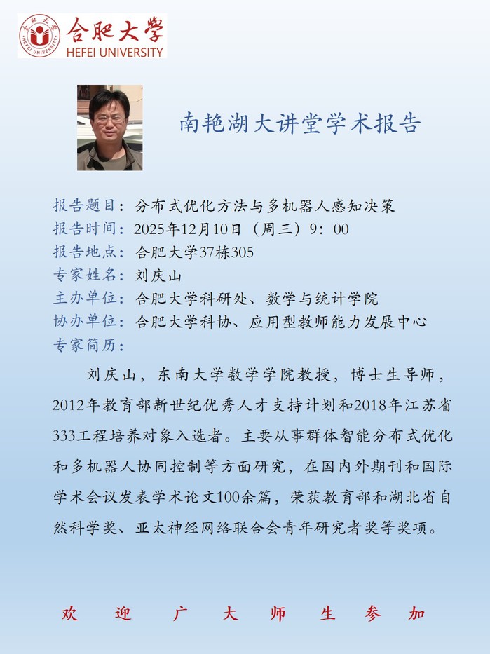 【南艳湖大讲堂】分布式优化方法与多机器人感知决策