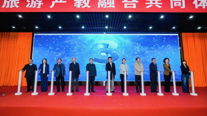 周飞在致辞中指出,研学旅游是链接教育、文化与旅游的关键纽带,共同体的成立是推动院校、企业与行业深度融合的战略举措。他介绍了合肥大学的办学历史和特色,尤其在文旅教育领域的积淀与优势:学校自1980年起开展文旅类专业教育,2025年整合成立文化与旅游学院,构建了“本科-硕士”贯通培养体系,旅游管理专业获批国家级一流本科专业建设点。聚焦地域文化研究与产业服务,在研学课程设计、智慧文旅等领域成果丰硕。围绕共同体更好地发挥作用,他提出三点倡议:一是以“数智赋能”为引擎,激活发展新动能;二是以“融合创新”为路径,重塑产业新标准;三是以“生态共建”为目标,开创合作新局面。他承诺:作为共同体的理事长单位,合肥大学将充分发挥引领作用,依托平台优势,与各成员单位深化课程共建、师资互聘与资源共享,在研学旅游人才培养、课程创新与基地共建等方面持续探索,为构建产教融合新生态、推动文旅产业高质量发展贡献更大力量。