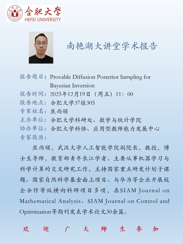 【南艳湖大讲堂】Provable Diffusion Posterior Sampling for Bayesian Inversion
