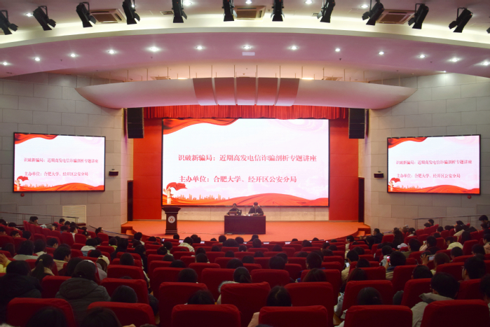 12月16日,我校在图书馆报告厅A厅举办电信网络诈骗防范知识讲座,合肥市公安局经开分局刑侦大队队长郑睿杰应邀主讲,200余名师生共同参与这场“反诈必修课”。