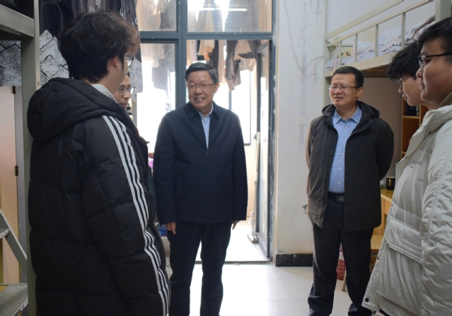 12月19日下午,在全国硕士研究生统一招生考试即将到来之际,校党委副书记周飞来到学生宿舍,看望慰问备战考研的学子。党委宣传部、党委学生工作部、党委研究生工作部及相关学院负责同志陪同走访。