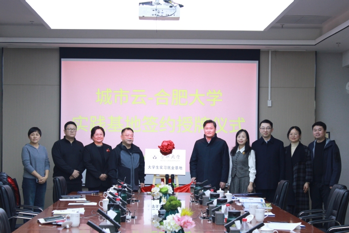 12月18日,党委委员、副校长王晓峰出席合肥大学-合肥城市云数据股份有限公司共建实践就业基地签约授牌仪式。合肥城市云总裁刘胜军、副总裁李晓洁及相关部门负责人,经济学院院长江玉荣、副院长郑飞鸿及学院相关教师参加。