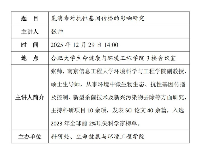 【善思讲坛】氯消毒对抗性基因传播的影响研究