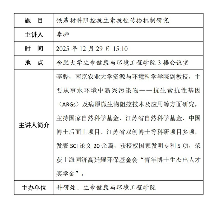 【善思讲坛】铁基材料阻控抗生素抗性传播机制研究