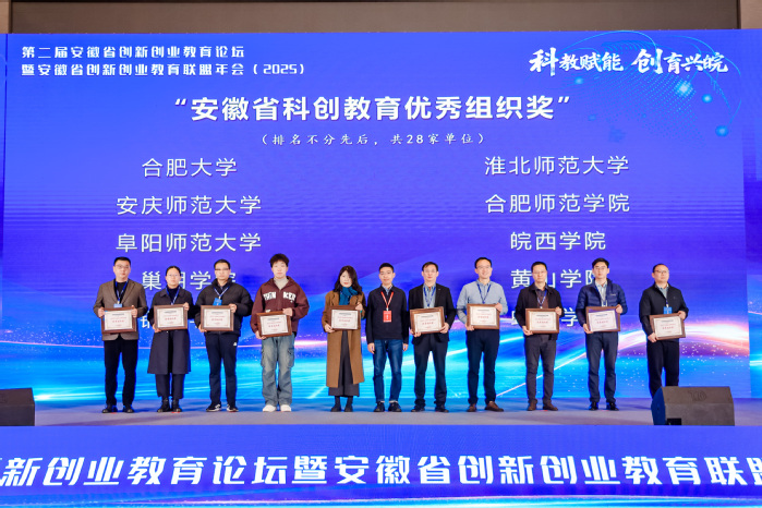 近日,第二届安徽省创新创业教育论坛暨安徽省创新创业教育联盟年会(2025)在合肥召开。本次年会以“科教赋能,创育兴皖”为主题,大会公布了优秀名单与合作伙伴,我校获2025年度安徽省科创教育“优秀组织奖”。