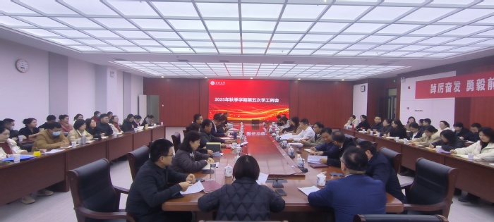12月24日,学校在大学生活动中心北一楼会议室召开2025年秋季学期第五次学工例会。党委副书记、校长任永出席会议并讲话,相关部门负责人,各学院党委书记、副书记、学工办负责人、大一年级全体辅导员,各物业公司负责人参会,会议由学生处处长丁增云主持。