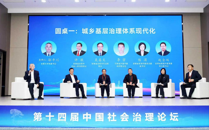 三场平行圆桌论坛分别聚焦“城乡基层治理体系现代化”“社会工作高质量发展”及“数智时代的公共安全与城市治理”。邬平川主持了题为“城乡基层治理体系现代化”的首场论坛,来自敦煌、许昌、合肥、芜湖等地的法院、司法、政研室与政法委系统的代表,围绕多元主体协同、矛盾纠纷源头预防与化解、网格化与信息化融合、平安建设与经济社会发展良性互动等议题展开深入研讨。邬平川在总结中表示,合肥大学将持续强化学科交叉、升级协同网络、深化数字治理研究,积极赋能基层治理现代化,与社会各界携手共建社会治理共同体。