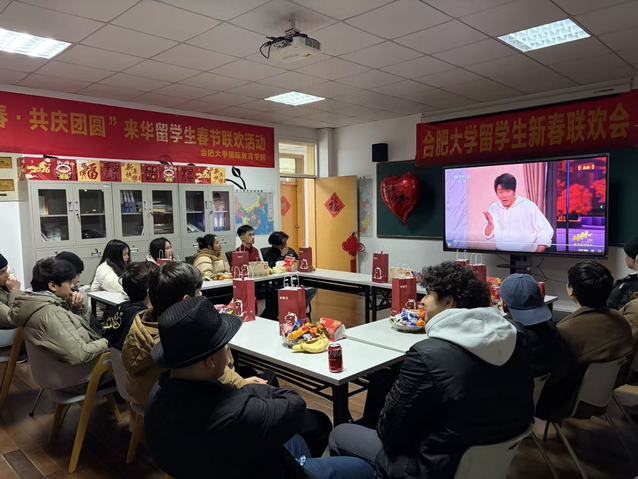 金马迎春,福满庐州。为丰富国际学生校园文化生活,增进对中国春节民俗与传统文化的理解,我校国际教育学院精心组织各国留学生集中收看马年春晚直播,共度温馨喜庆的中国除夕。
