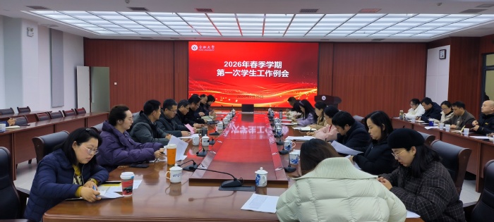 2月26日下午,学校在大学生活动中心会议室召开2026年春季学期第一次学工例会。校党委常委、副校长白义香出席会议并讲话,相关部门负责人、各学院党委副书记、学工办负责人,各物业公司负责人参会,会议由学生处处长丁增云主持。