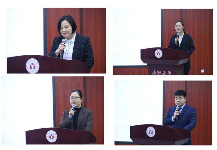 新晋升高级职称教师代表与优秀教授代表进行了发言,分享了教书育人、科研创新的心得感悟。谈及对科研的坚持,新晋升副教授代表能源材料与化工学院周宁宁说:“科研创新,从来不是灵光一闪的瞬间,而是久久为功的坚持。学校是我强大的后盾,给予我成长所需要的每一份养分。”复盘个人成长之路,新晋升教授代表电子信息与自动化学院年福东有所领悟:“要坚守初心,锚定方向。立足学校发展定位和专业所长,深耕一个领域。要正视不足,及时调整。主动反思,及时适配政策导向与学科发展趋势。要乐于交流,主动借力。在思想碰撞中拓宽视野,在互助共进中提升自我。”提到未来努力方向,新晋升教授代表赵西表示:“我将依托德国学习背景与资源优势,在教学、科研和国际交流方面深化中德合作,打造中德合作特色‘金课’,力争实现国家级课题与高质量成果突破;推动中德师生互访与联合研究。”优秀教授代表先进制造工程学院谷曼围绕“教学,要有‘破壁’的勇气”“科研,要有‘扎根’的定力”“育人,要有‘点燃’的热情”三个方面,分享了自身在教书育人与科研创新方面的心得体会。她表示,职称晋升不是终点,而是服务学校发展、服务产业需求的新起点,希望大家通过扎根教学一线,深耕产教融合,以归零心态再启新程,为学校高质量发展和制造强国建设贡献合大教师的智慧与力量。