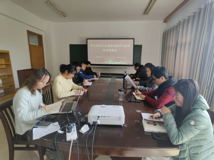 会上,高艳传达上级及学校关于开展树立和践行正确政绩观学习教育的文件精神与工作要求,对学院学习教育工作进行全面动员部署,明确目标任务、学习时间、学习对象及学习重点。