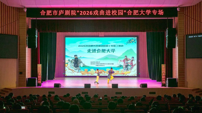 为深入弘扬中华优秀传统文化,丰富校园美育内涵,涵养师生人文素养,2026 年 4 月 9 日晚 19:00,由校团委、党委宣传部、电子信息与自动化学院联合主办的合肥市庐剧院“2026 年戏曲进校园” 合肥大学专场演出,在大学生活动中心南楼大礼堂精彩上演。