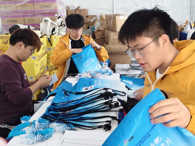 4月19日正赛当日,全体志愿者于凌晨到岗,分别承担咨询引导、补给保障、芯片退还、完赛物资发放、礼仪服务等任务。咨询岗志愿者耐心解答选手关于路线、存包、交通等各类疑问;补给岗志愿者有序提供饮水、水果、热饮等物资,确保选手能量补给及时到位;芯片退还岗严格规范操作流程,认真核对回收数量;完赛物资发放岗有序组织发放,避免重复领取;礼仪岗志愿者以端庄仪态圆满完成开赛及颁奖仪式服务,展现了良好精神风貌。