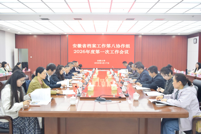 4月17日,安徽省档案工作第八协作组2026年度第一次工作会议在我校召开,省委办公厅(省档案局)档案管理一处处长邱旻、省档案馆保管处处长周建武、省教育厅办公室副主任胡艳群及第八协作组成员单位档案工作负责人参会。校党委常委、组织部部长汪文忠出席并致辞。