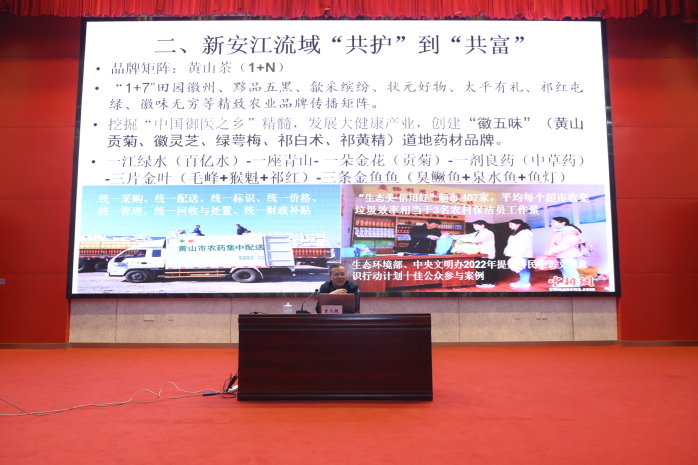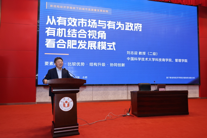 林毅夫作题为“中国发展的奇迹及有效市场与有为政府”的主旨报告。报告回顾了中国改革开放以来的发展成就,指出中国经济实现快速稳定发展的根本原因在于让有效市场与有为政府协同发力,实现了高质量发展,发挥了“后来者优势”。中国科学技术大学教授刘志迎作了题为“从有效市场与有为政府有机结合视角看合肥发展模式”的报告。他以新结构经济学为分析框架,梳理了合肥近20年跨越式发展历程。安徽省政协文化文史和学习委员会副主任、原省社会科学院院长曾凡银作了题为“着力打造生态文明建设的安徽样板”的报告。他结合新安江流域跨省生态补偿机制、“林长制”等安徽首创的改革实践,阐述了安徽如何将绿水青山转化为金山银山。