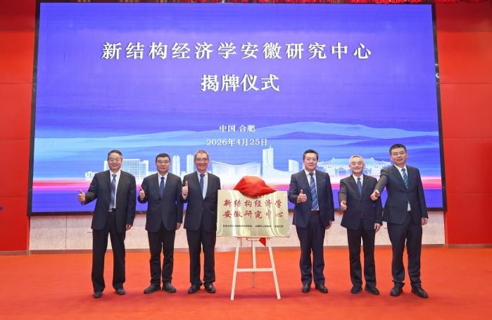 4月25日,由北京大学新结构经济学研究院、合肥市人民政府与合肥大学三方共建的“新结构经济学安徽研究中心”在合肥大学图书馆报告厅正式揭牌。