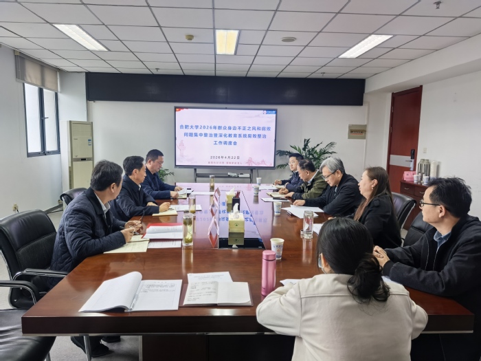 4月22日,校纪委召开2026年群众身边不正之风和腐败问题集中整治暨深化教育系统腐败整治工作调度会。校党委常委、纪委书记、省监委驻合肥大学监察专员吴功福主持会议,各相关单位负责同志参加会议。