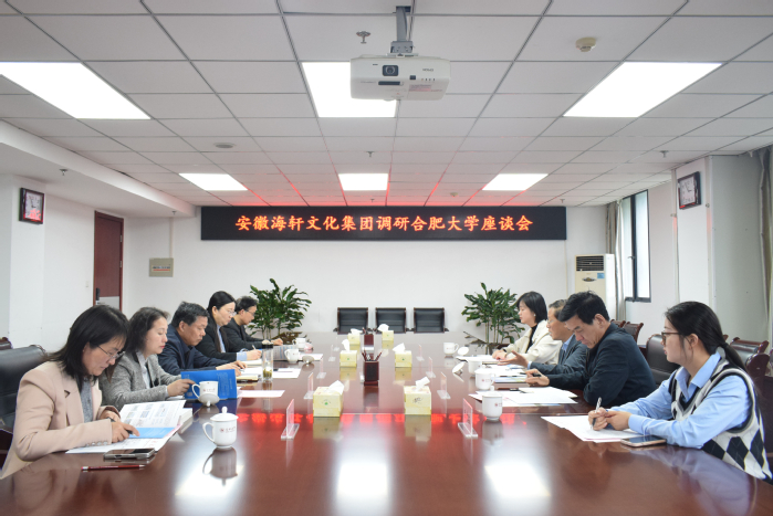 座谈会上,周飞介绍了我校的办学历史、办学特色及党建工作成果等。他指出,合肥大学在学科科研和人才培养方面优势显著,海轩文化集团创新精神和实践成果丰富,双方可以在“共建”中实现资源共享、在“共研”中实现优势互补、在“共育”中实现价值共创。