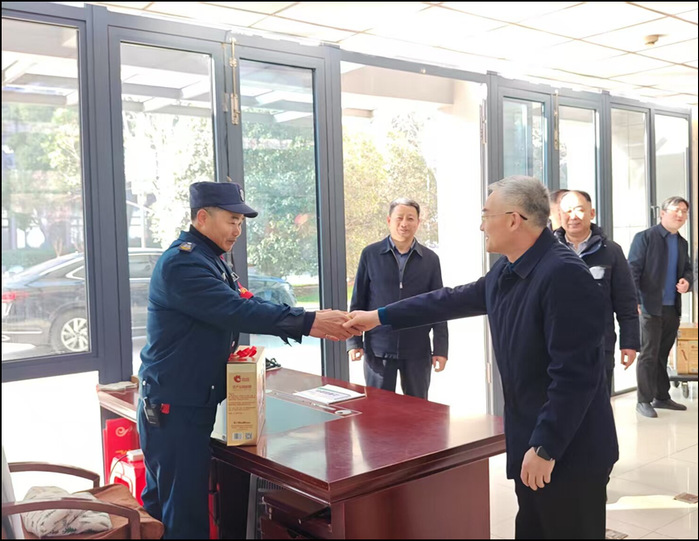 每到一处,邬平川亲切地与大家握手交谈,对同志们春节期间放弃与家人团聚,始终坚守岗位、无私奉献表示衷心感谢,希望通过他们向其家人转达节日的祝福,并为大家送上慰问品。走访慰问中,邬平川详细了解值班安排以及设施设备运行等情况,嘱咐相关部门负责同志和值班人员,要牢固树立安全第一的思想,牢记岗位职责,始终保持高度责任心;要加强巡逻检查,重点做好防火防盗工作,确保各校区供水、供电和交通正常运行,有力开展安全保卫等工作,确保校园安全稳定。