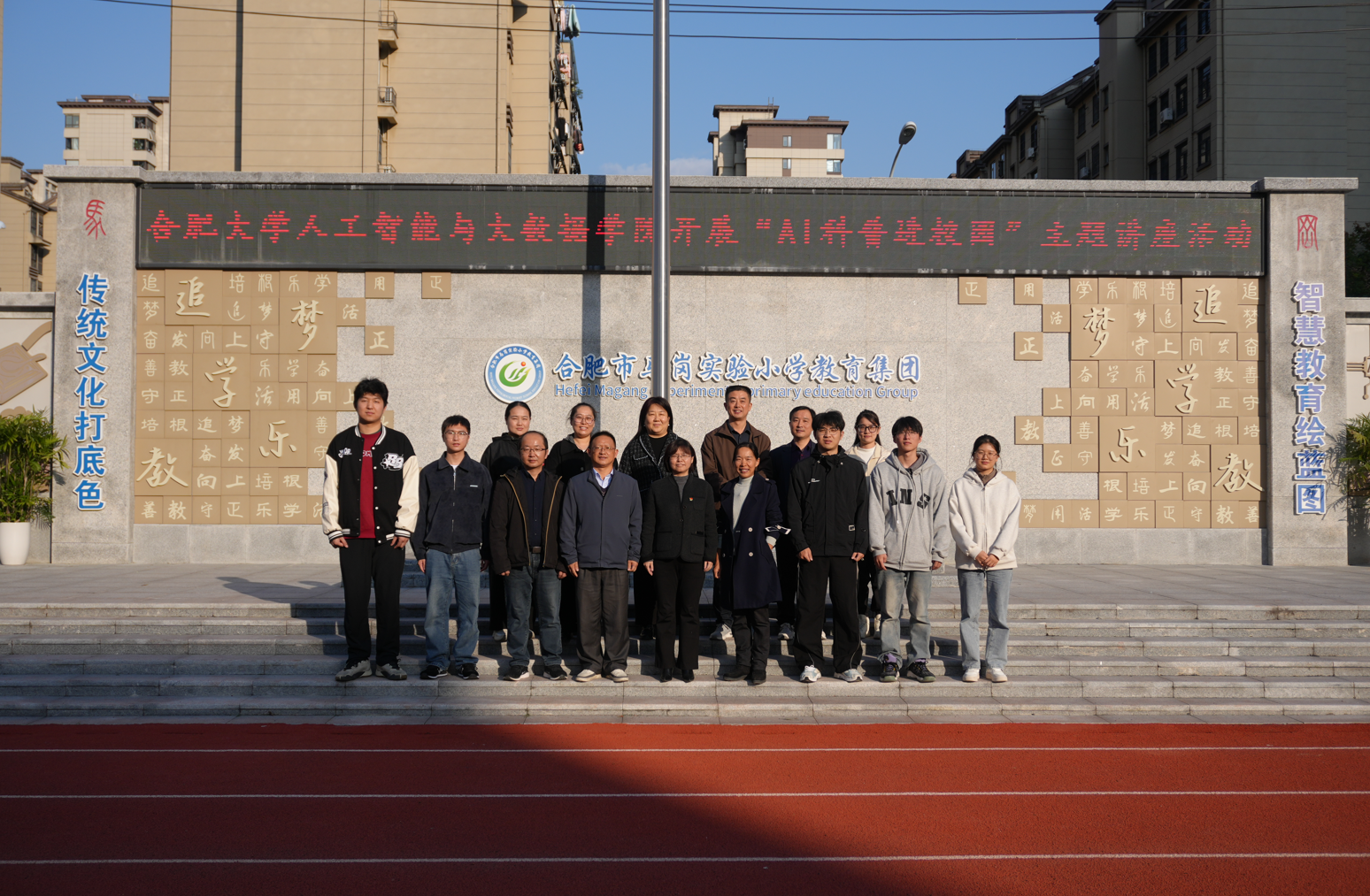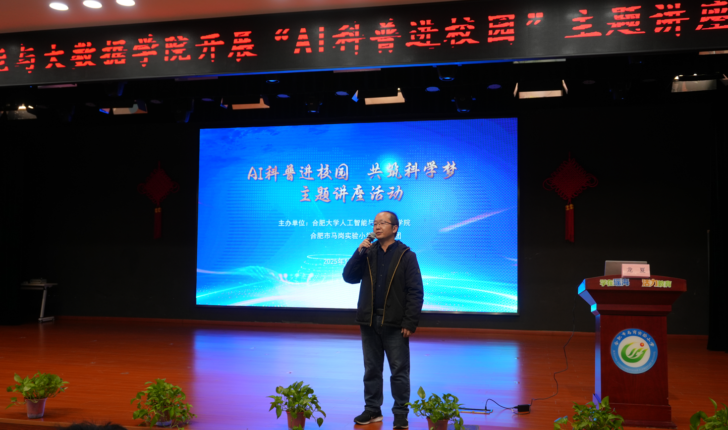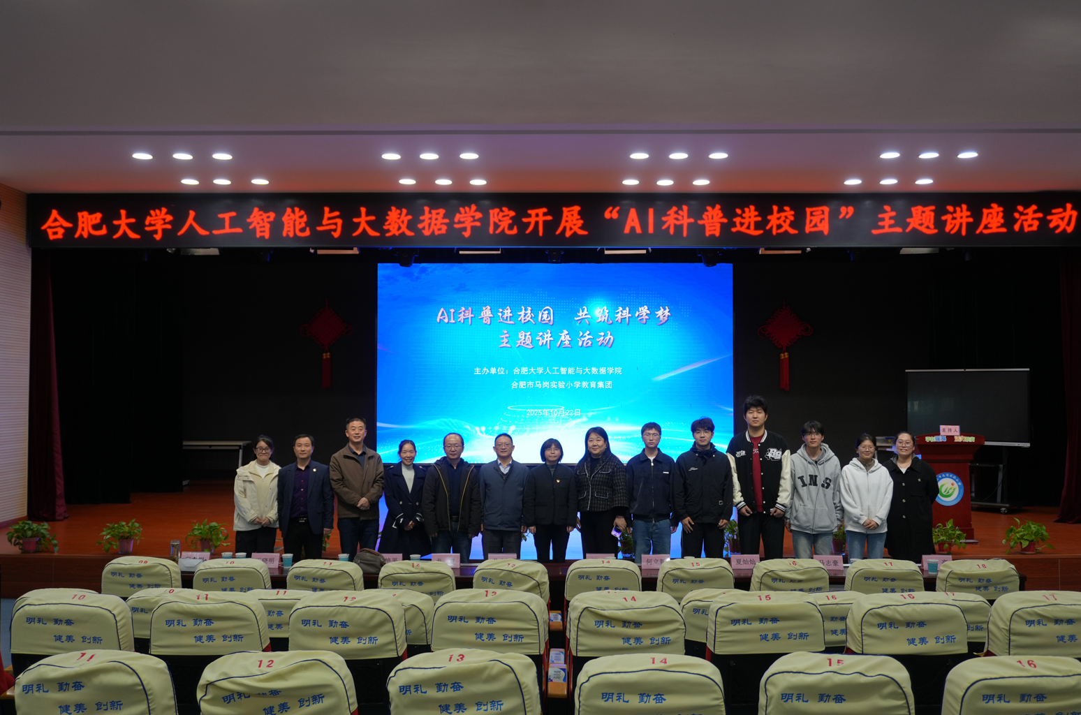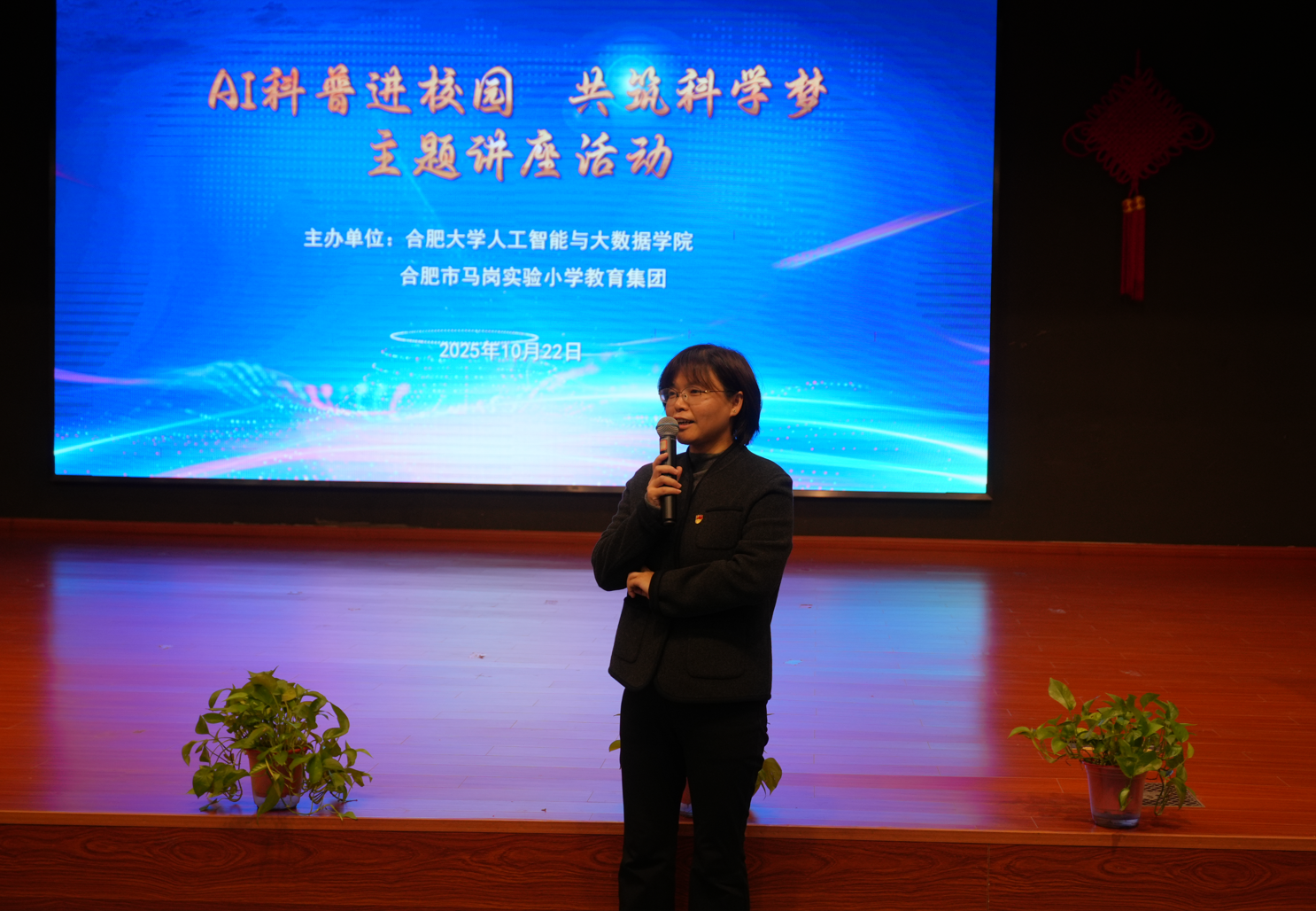 为积极响应国家人工智能教育普及号召,充分发挥高校服务社会的职能,人工智能与大数据学院教工第一党支部于2025年10月22日下午,组织党员教师赴合肥市马岗实验小学开展“强国行”专项行动之“AI科普进校园”主题讲座活动。出席本次活动的领导与专家有人工智能与大数据学院党委书记胡萍、教工第一党支部书记何立新、副书记龙夏、组织委员陈艳平,以及合肥市马岗实验小学教育集团党支部书记黄晓静、校长薛文银等。