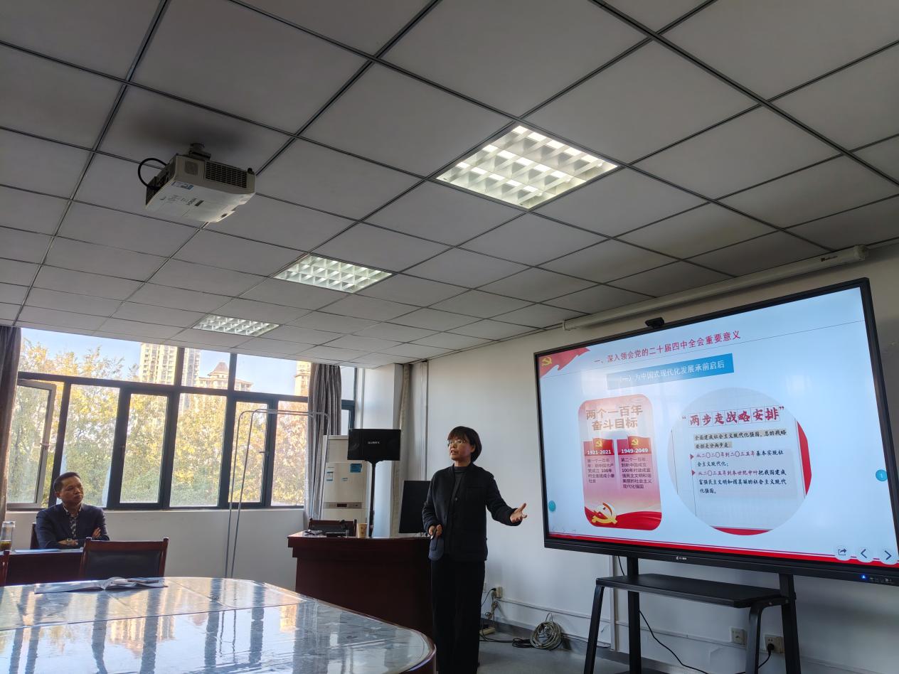 会上,学院党委书记胡萍讲专题党课,传达学习习近平总书记在党的二十届四中全会上的重要讲话精神和全会精神。她从深入领会党的二十届四中全会的重大意义、牢牢把握党的二十届四中全会的鲜明特点、系统掌握党的二十届四中全会的主要内容和明确践行党的二十届四中全会精神的责任要求等四个方面对全会精神进行了解读。胡萍指出,学习宣传贯彻党的二十届四中全会精神,是当前和今后一个时期的重大政治任务。全院教职工必须提高政治站位,深刻领会全会核心要义,筑牢思想根基,将全会精神全面融入思想政治教育体系,使其入脑入心,切实转化为“立德树人”的坚定自觉与砥砺奋进的行动力量。