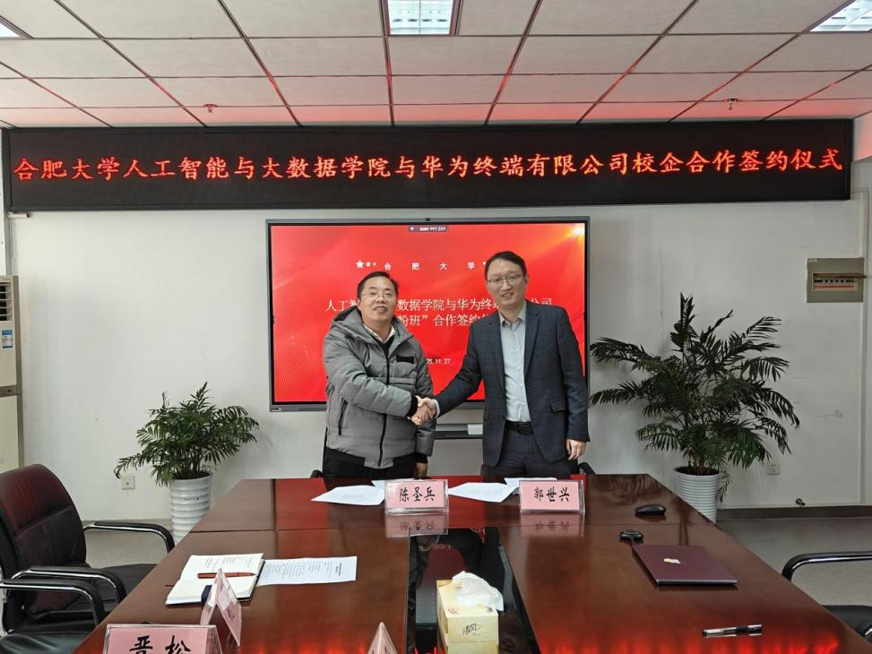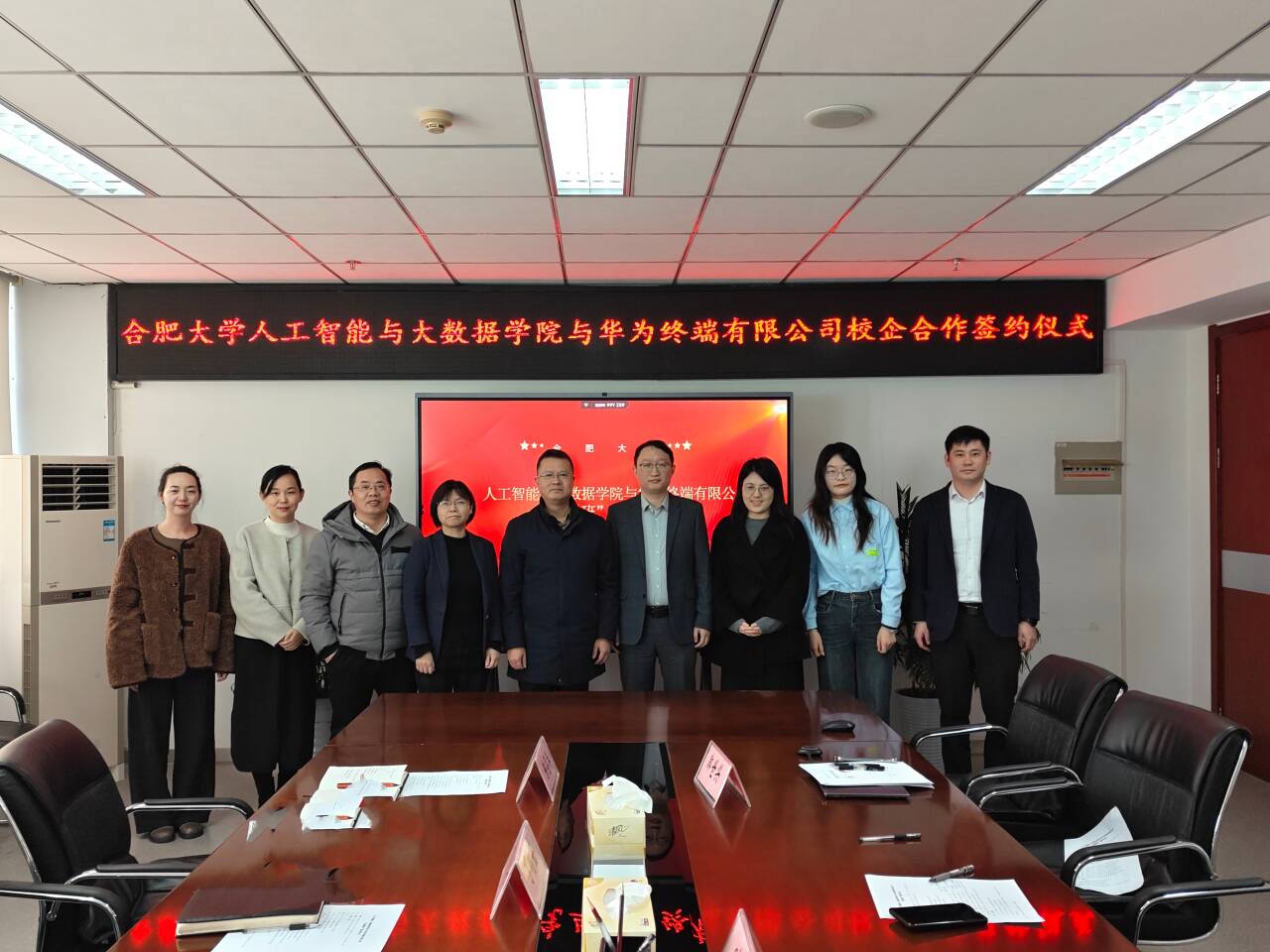 11月27日下午,合肥大学人工智能与大数据学院与华为终端有限公司校企合作签约仪式在行政楼7楼会议室举行。