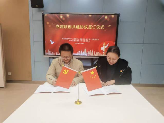 为深入学习贯彻党的二十大精神,把党的二十大报告中“实施科教兴国战略,强化现代化建设人才支撑”的指导思想落实到课堂上、融合到业务中,推动党建与业务深度融合,充分发挥高校基层党组织在服务基础教育、助力教育高质量发展中的先锋模范作用,12月8日下午,合肥大学人工智能与大数据学院教工第一党支部与合肥市湖东小学党支部共同举行党建联创共建协议签订仪式,并同步启动“AI科普进校园 强国行专项行动”。本次活动以党建为引领、科技为纽带,旨在构建高校与小学协同发展的新机制,为教育创新注入强劲动能。