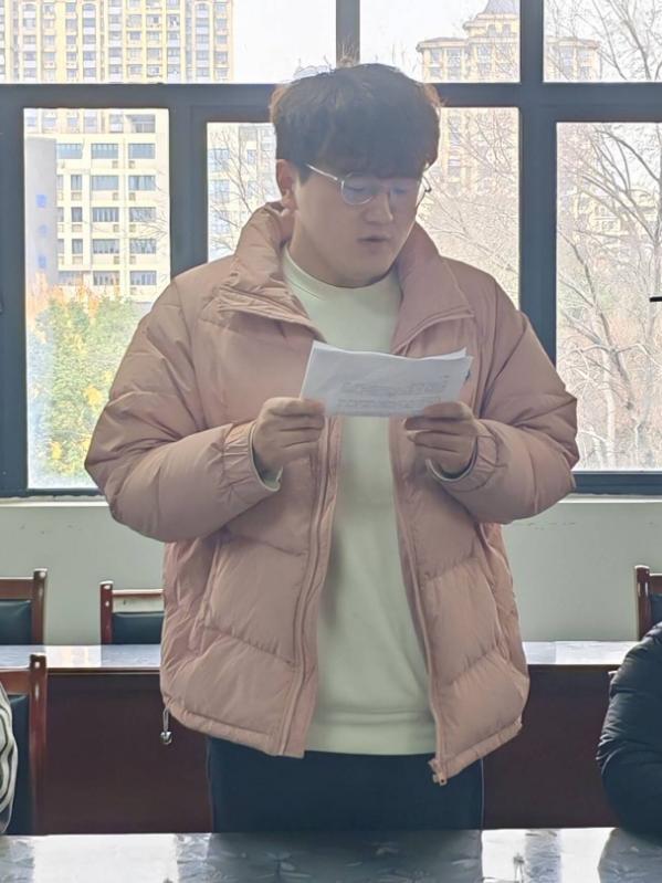 高宇同学首先对学院领导、老师和同学表示了诚挚的感谢,接着他表明成为一名合格的中共预备党员应坚定理想信念,筑牢思想根基;在思想、学习、工作、生活中严格要求自我。高宇同学认为在成为一名中共预备党员后应当:强化责任意识,积极服务群众;严格遵守党的纪律,自觉接受党组织的教育、管理和监督。在面对各种诱惑和考验时,要坚守原则,保持清醒的头脑,做到廉洁自律,永葆共产党员的政治本色。