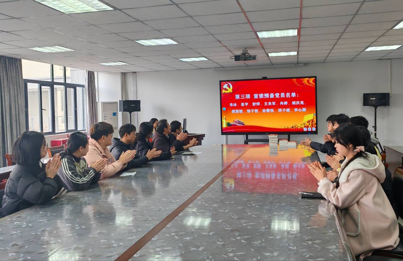 议程第三项:宣读预备党员名单:朱冰、高宇、舒烨、王来军、冉婷、胡庆亮、 胡慧敏、邹子恒、徐馨怡、邱子越、李心颖