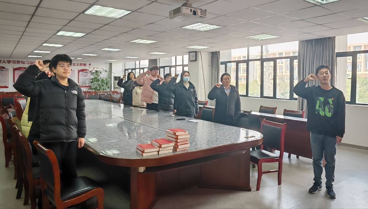 2025年12月19日下午,人工智能与大数据学院党委于36-305会议室组织了新党员入党宣誓仪式。参与本次仪式的有人工智能与大数据学院党委委员、教工第一支部书记何立新教授,学生第一党支部书记汪剑老师,党委组织员谢奇爱老师,以及11位新发展的学生预备党员。本次大会由谢奇爱主持。