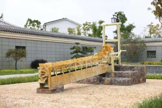 团队沿青石板路缓步前行,阳光穿过村道枝叶,落在古朴的民居与田埂之间。在村头田畔,一架龙骨水车静静伫立,木质构件历经岁月打磨,纹理粗糙却依旧坚实。讲解员介绍,这是祖辈引水灌溉、靠天吃饭的重要农具,如今成为农耕文明的活化石。队员们伸手轻触木轮与叶片,仿佛听见水流声响、看见先民劳作身影,真切触摸到千年农耕文明的温度。