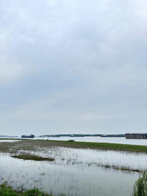 沿着江岸步道继续前行,视野逐渐开阔,长江水面宽阔平缓。我们观察到滩涂区域水草生长良好,水鸟活动频繁,现场环境安静清新。队员们通过记录江岸生态现状,并交流讨论生态修复对生物多样性的积极影响。在江畔短暂停留时,大家切身感受到沿江环境从“工业岸线”向“生态岸线”转变带来的明显变化。