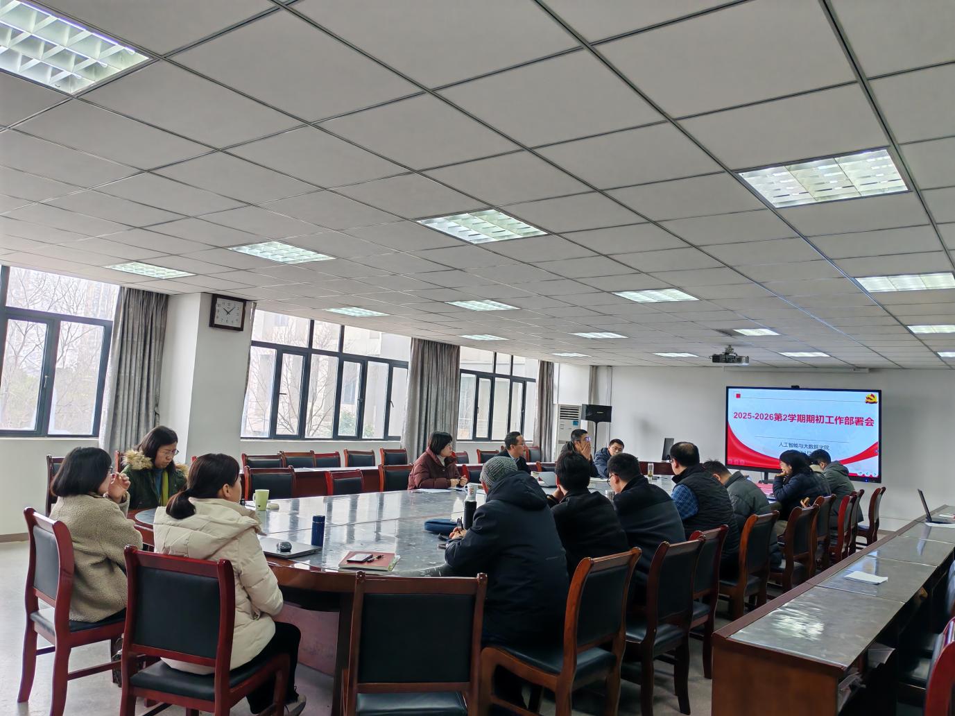 春风浩荡催奋进,扬帆起航正当时。为统筹推进新学期各项工作高质量开展,明确发展目标、压实工作责任,3月3日,合肥大学人工智能与大数据学院在学院会议室隆重召开本学期期初工作部署会。学院领导班子成员、各专业主任、科室负责人参加会议,会议由学院党委书记胡萍主持。
