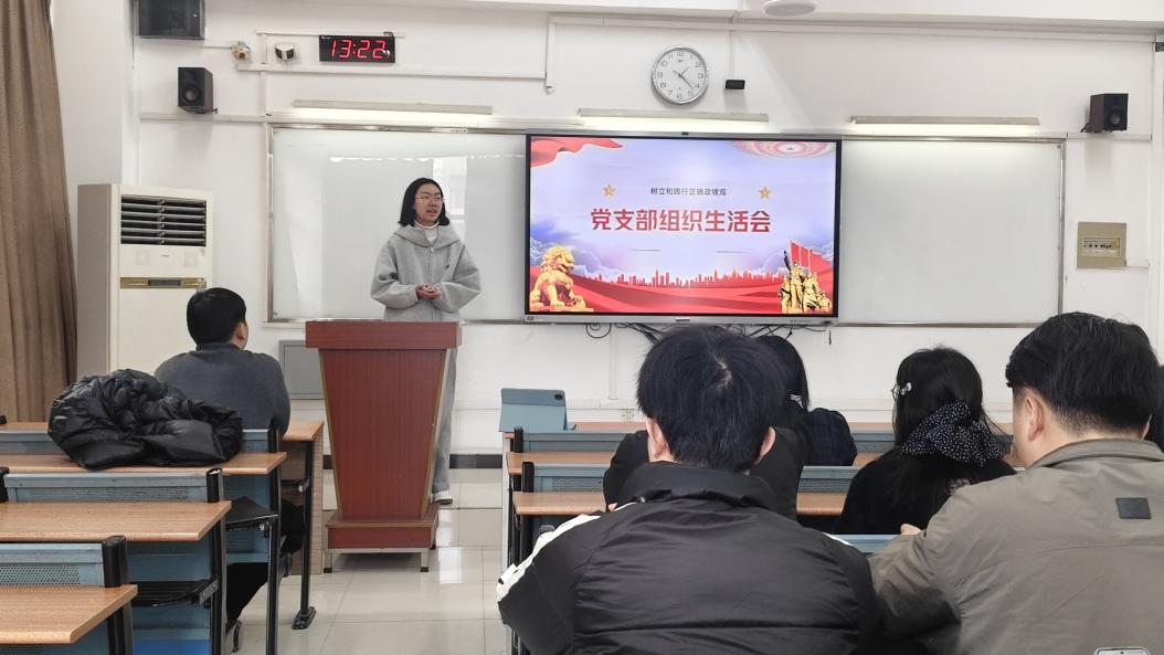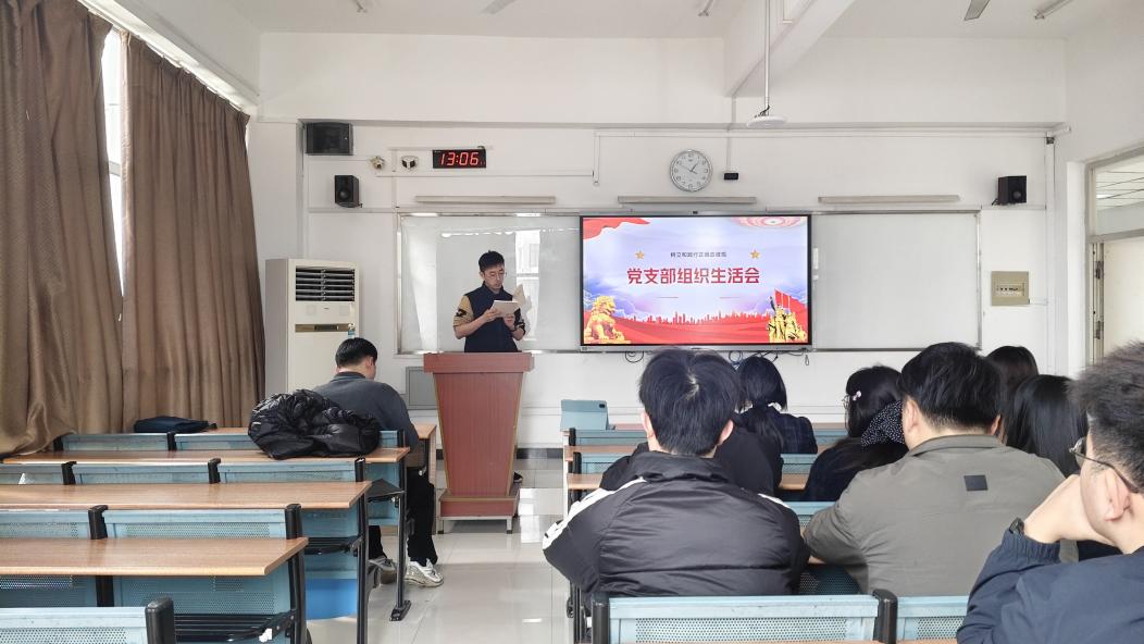 会议共设六项议程。支部书记汪剑首先领学习近平总书记关于树立和践行正确政绩观的重要论述,强调要把为民造福作为最大政绩,坚决反对形式主义、官僚主义。随后,汪剑汇报了2025年支部工作情况及2026年工作规划,支部在过去一年中获评校级“五星党支部”、2024年度校级“先进基层党组织”。