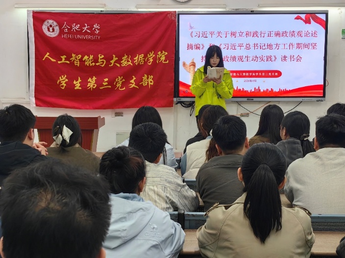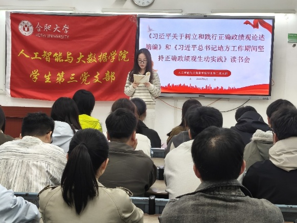 近期,人工智能与大数据学院学生第三党支部召开《习近平关于树立和践行正确政绩观论述摘编》《习近平总书记地方工作期间坚持正确政绩观生动实践》专题读书会。本次读书会由支部书记苗冰涛主持,支部全体党员参加学习。