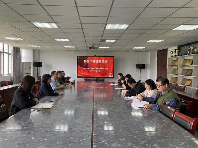 据学校工作部署,为扎实做好新任科级干部廉政教育工作,筑牢干部廉洁自律思想防线,4月17日,人工智能与大数据学院召开科级干部廉政谈话会。学院党政领导班子成员、全体科级干部参加会议,会议由学院党委副书记、纪委书记姚娜主持。