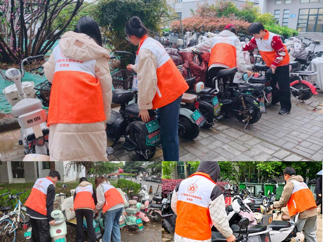 活动开展期间,各班级志愿者们开展了学生公寓区域电瓶车规范停放专项整治活动。面对杂乱停放的电瓶车,志愿者们分工协作,细致整理歪斜、占道的电动车,将车辆统一摆放到指定区域,同时引导来往的同学规范停车,有效疏通通行通道,消除安全隐患,让校园出行环境更加安全有序。
