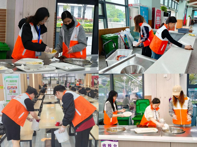 在各个学生食堂,各班级志愿者们开展了文明就餐引导与食堂清洁志愿服务活动。志愿者们主动清理餐桌、分类处理餐后餐具与残渣,引导同学们按需取餐、践行“光盘行动”,用贴心服务减轻了食堂工作人员的负担,带动更多同学养成文明就餐、节约粮食的良好习惯,共同守护了整洁温馨的就餐环境。