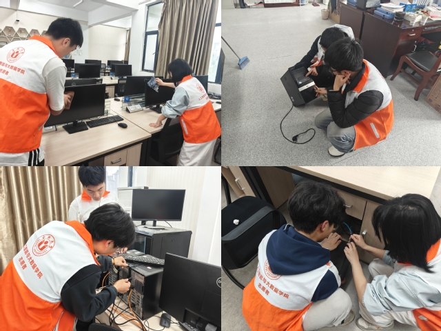 在学院实验室专业机房内,各班级志愿者们开展了机房环境清洁与设备维护志愿服务。大家分工明确,有的擦拭显示器、键盘与桌面,清理机房卫生死角;有的整理机箱线路,排查设备连接问题和部分软件问题,为同学们营造了干净、整洁、安全的上机学习实验环境,用细致服务保障教学秩序的顺利开展。