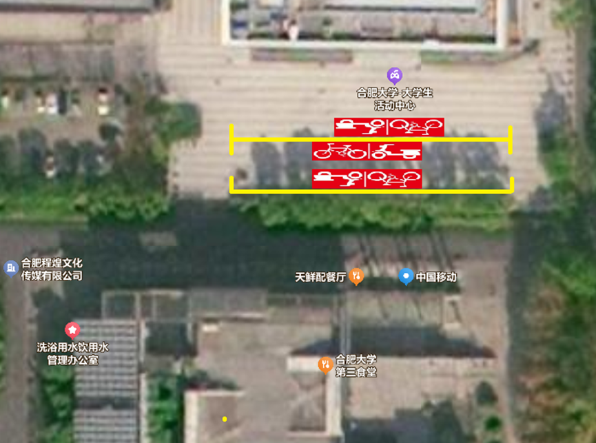 各学院、各部门:为减少校园交通安全隐患,营造文明、有序的校园环境,学校决定对二区善思路食堂(二食堂)北侧非机动车停放点进行重新规划。现将具体事宜通知如下:1、取消二区善思路食堂(二食堂)北侧原有非机动车停车位;2、在大学生活动中心南侧广场规划非机动车停车位(见示意图);3、请各学院、各部门做好对本单位师生员工的宣传工作,积极配合校园交通整改,共同维护美好的校园环境。本方案自2025年10月9日执行! 党委保卫工作部 保卫处2025年9月30日