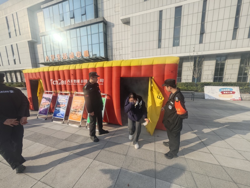 为切实加强师生员工的消防安全意识,普及火灾应急逃生知识,提升自救互救与应急处置能力,根据学校“消防安全宣传月”活动统一部署,11月13日下午,由保卫处、校团委联合校消防维保单位天泽智联科技股份公司共同组织的“消防逃生屋体验”活动在大学生活动中心南侧广场顺利举行。