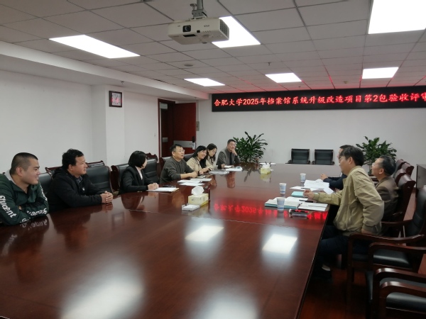 2025年11月4日下午,合肥大学档案馆系统升级改造项目(第2包)验收会在行政楼八楼会议室召开,校党政办主任倪泽强主持。国资处、档案馆相关负责人及项目中标单位代表参会。评审专家组一行3人负责本次验收。