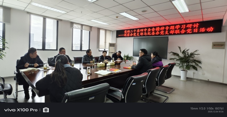 12月4日,校党委巡察办、纪委办党支部联合开展“党的二十届四中全会精神专题学习研讨”主题党日活动。校党委委员、纪委书记、监察专员吴功福为全体党员上深入学习贯彻党的二十届四中全会精神专题党课。